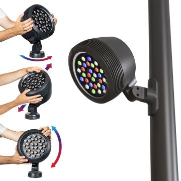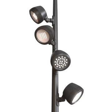 Fix the spotlight base onto the pole or the surface, then insert the male part and secure it by simple rotation. Then, with complete freedom of movement, you can lock the position with two M8 screws.
