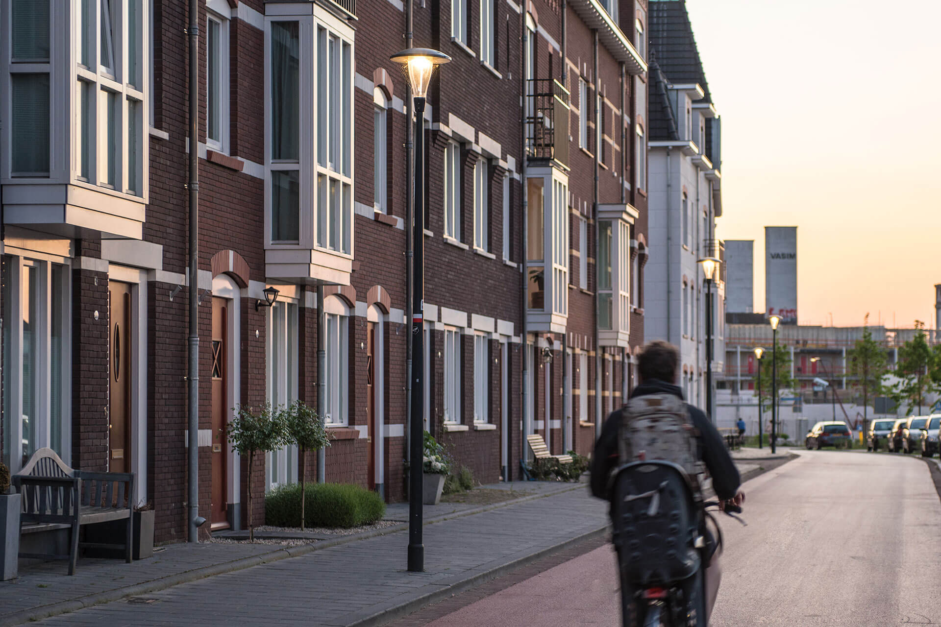 They emit a gentle white light that creates an environment in which the residents feel safe and secure to cycle around, stop for a conversation or simply spend time outside at night.