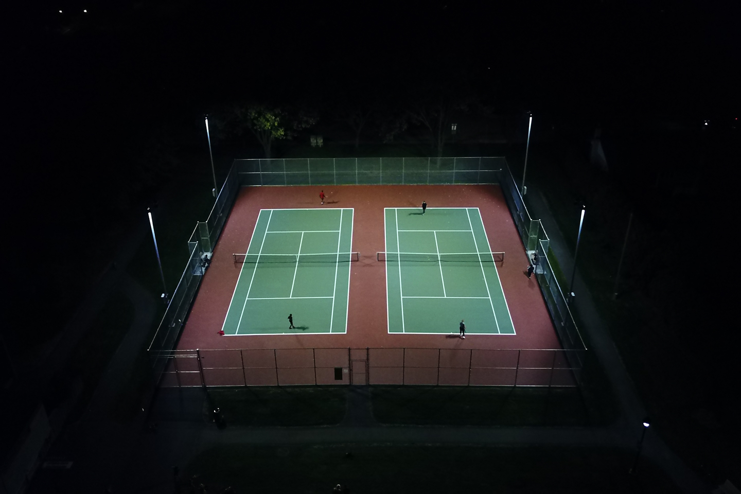 To enable residents to take advantage of the tennis courts after school and work, especially in the darker months, the city wanted an energy-efficient lighting solution with zero light spill. As the tennis courts are built close to residential areas, the real challenge was to integrate the high light levels required for safety and comfort without negatively affecting residents living in the homes adjacent to the park.