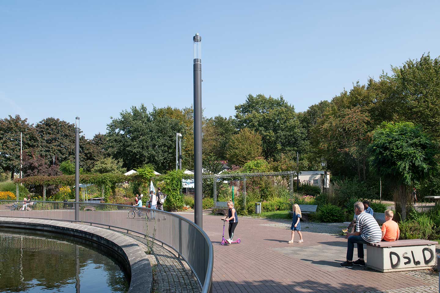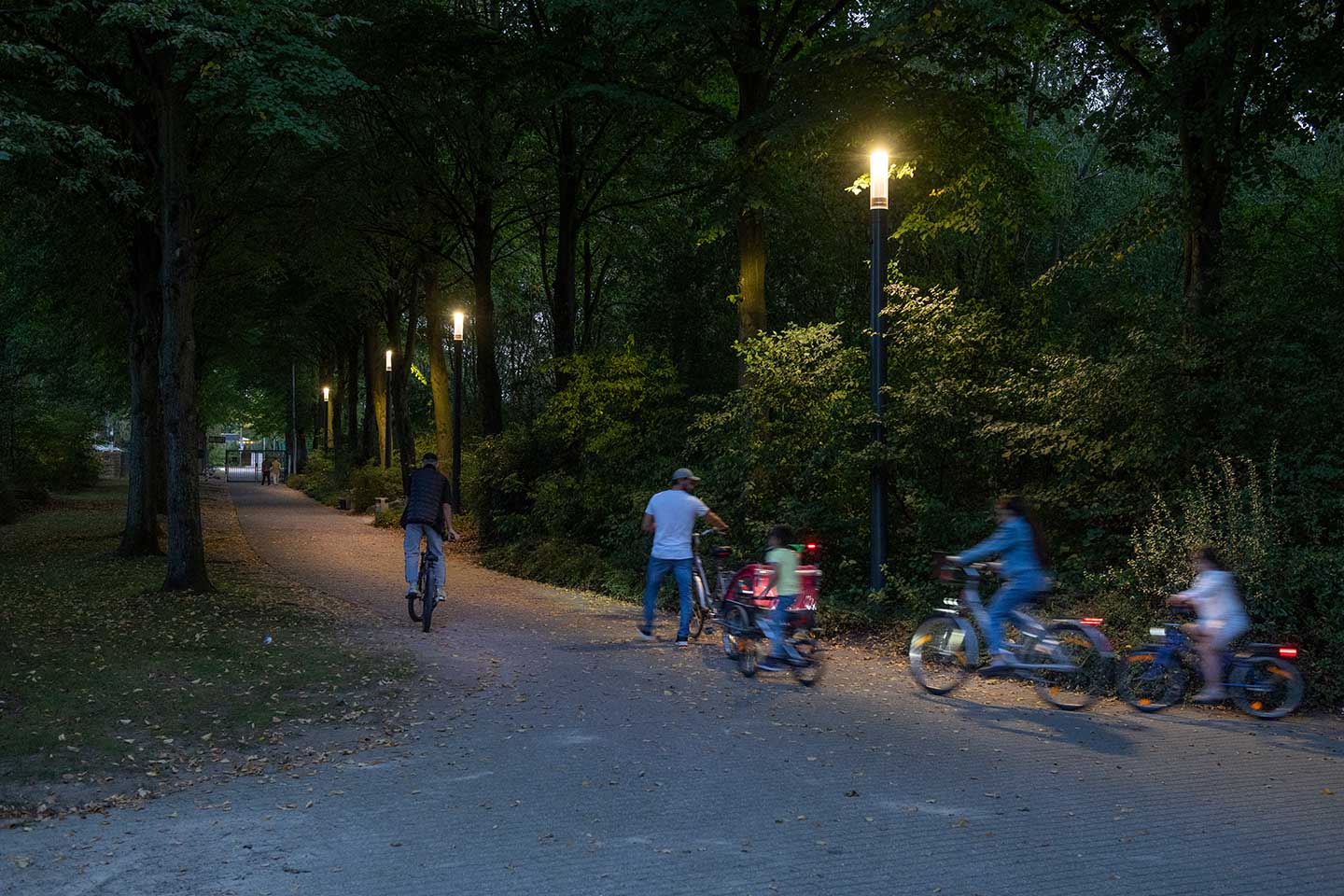 This large park, with its playground for the kids, café at the edge of the pond where people can grab something to eat and plenty of large green fields to play sport makes it quite a popular spot for families. The luminaires had been installed over 40 years, so they needed to be replaced. It was an ideal area to showcase new services and have residents test them.