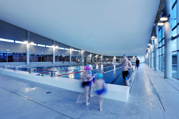 Never overlit - but never underlit either - Ans swimming pool provides a comfortable environment for users while only consuming the energy that is absolutely necessary. As the variations in lighting intensity are subtle and progressive, they are imperceptible. They do not intrude in any way on the activity of the staff and swimmers - who can thus make the most of their leisure activities in a perfectly lit setting.