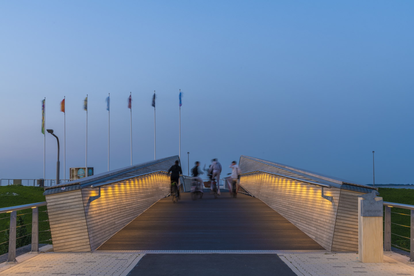 The new Diekloper Bridge is equipped with sustainable energy-saving LED lighting to guide people safely and create an attractive night feature. An LED handrail discreetly integrates the bridge railings to free up space and create a warm nocturnal ambiance.