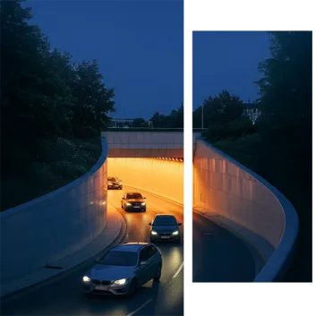 Facilitate a smooth traffic flow thanks to lighting that enables drivers to quickly adapt to the tunnel environment, identify possible obstacles and travel without reducing speed.